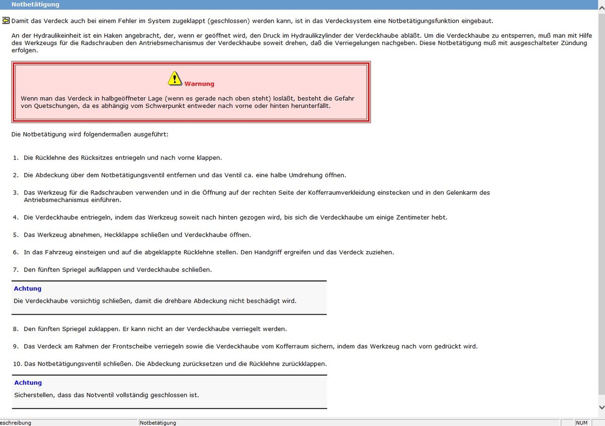 Also: alles hier im Forum über das 9-3I-CV (Achtung, es wird mit dem 900II-CV in einer Rubrik behandelt, darf mit diesem aber nicht verwechselt werden, weil dessen Verdeck völlig anders (ohne Hydraulik) funktioniert!) sowie im WIS dessen Funktion studieren - das ist unabdingbar.