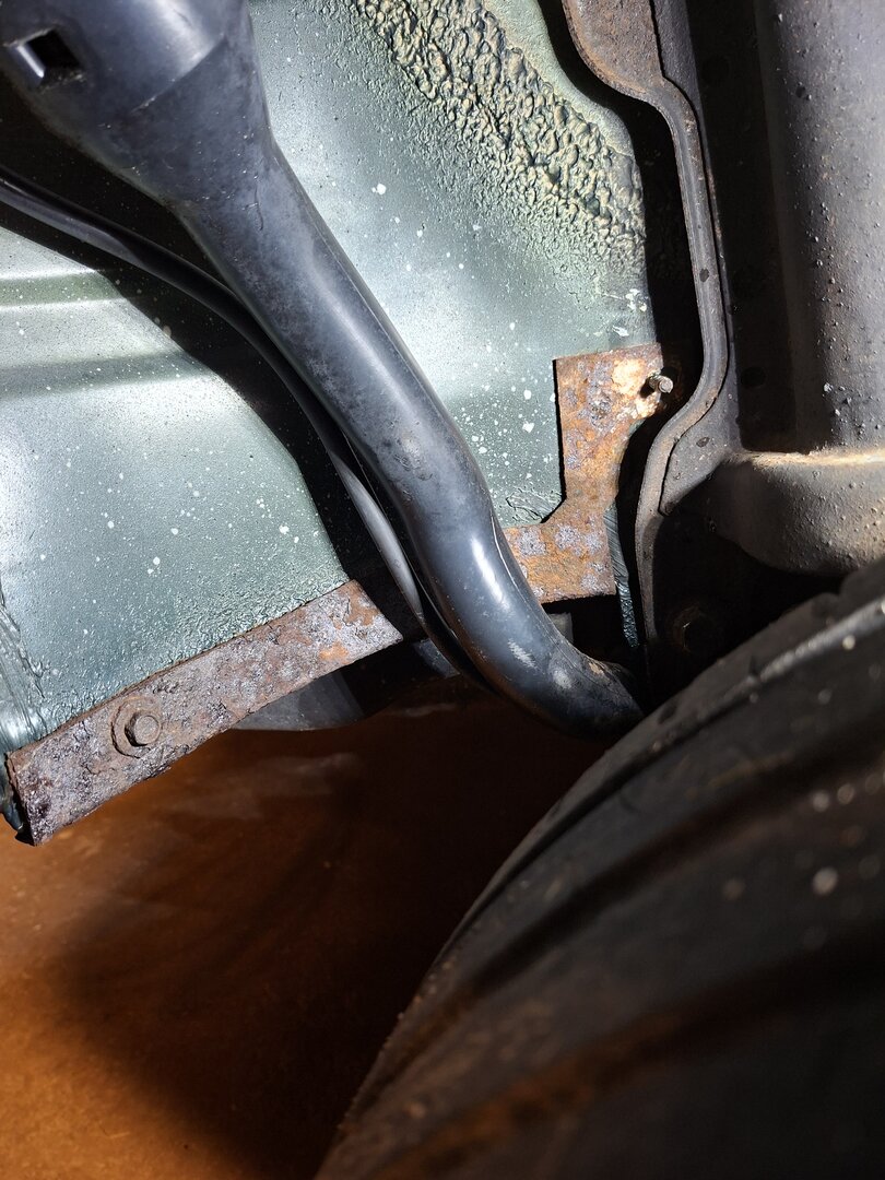 Ne, das liegt an der unteren Kante vom Radhausblech an. Das rostige Teil im ersten Bild in Tobias Eröfffnungspost. Davor, hier entfernt sitzt noch der wheel liner (diese Plastikverkleidung des Radhauses). Daher gammelt das da auch so gut. Bei dem Diesel hier waren außen noch 4cm im Bereich der Schraube übrig. Total Banane zumal das Teil wohl nicht verzinkt war.